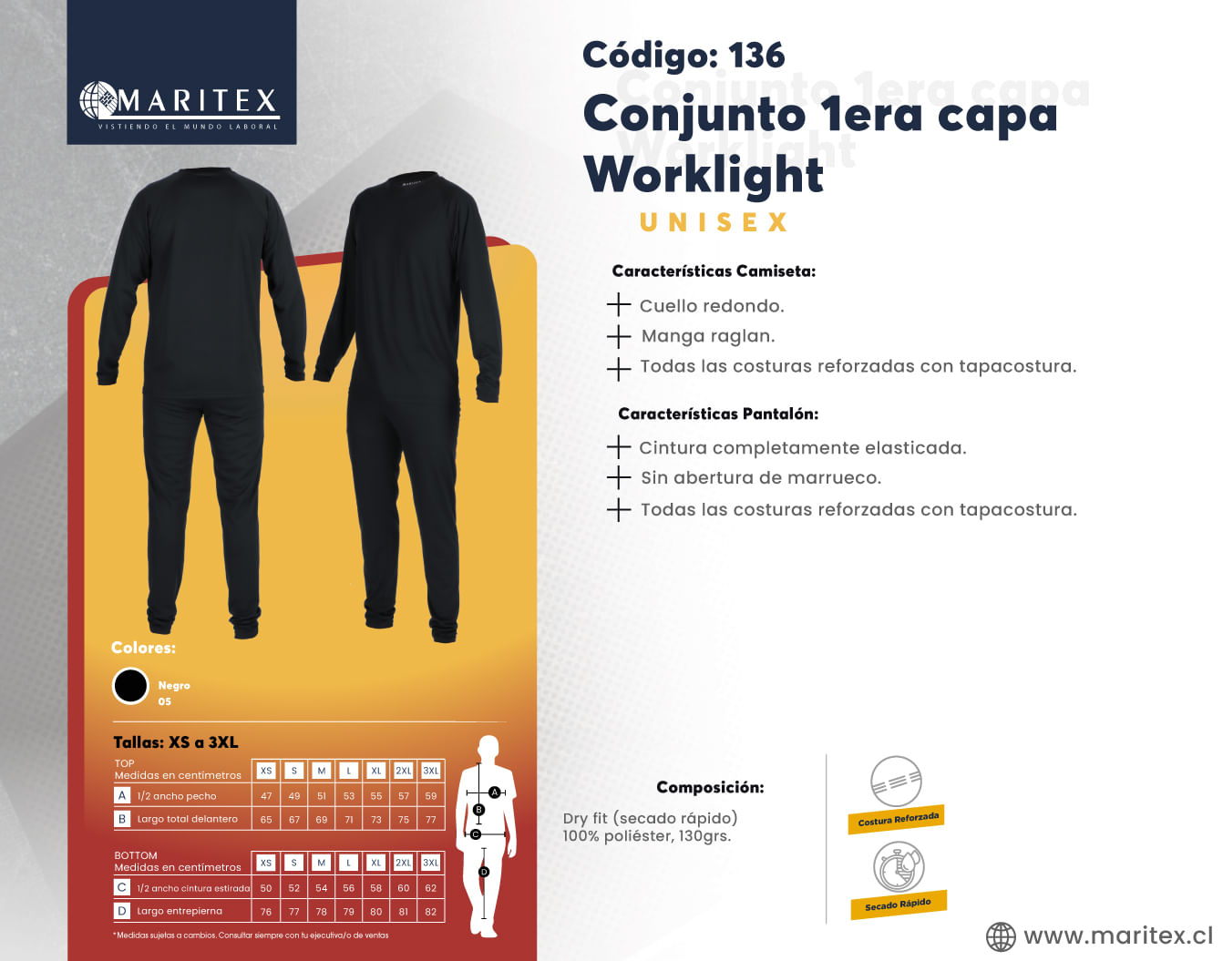 Esta primera capa Worklight, ideal para el trabajo, está diseñada para mantener el cuerpo seco y cómodo durante largas jornadas. Perfecta para diversas actividades laborales, proporciona un ajuste óptimo que asegura rendimiento y confort durante todo el día.