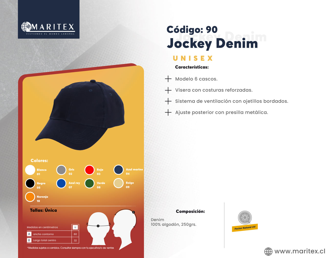 El Gorro jockey básico de denim, ideal para el entorno laboral. Confeccionado en tejido de denim duradero, ofrece un ajuste cómodo y resistente. Su diseño sencillo y funcional proporciona protección básica, siendo una opción práctica para quienes buscan un accesorio confiable y duradero para el trabajo. Perfecto para completar tu ropa laboral con una pieza de utilidad diaria.