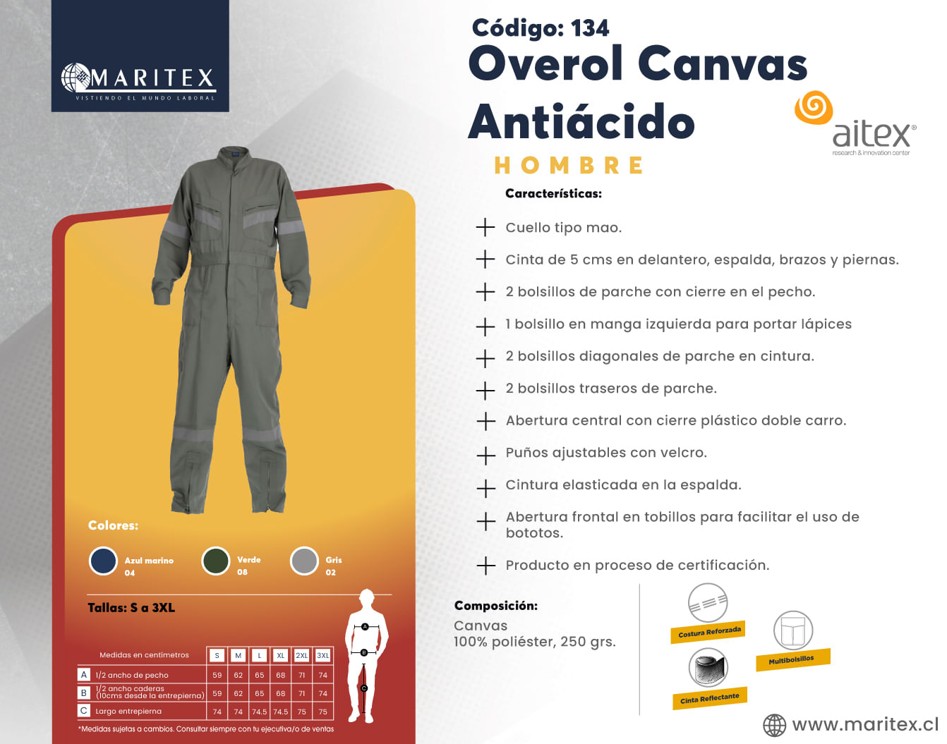 Este overol para hombre está diseñado para el trabajo, incorporando cintas reflectantes que garantizan una alta visibilidad y una tela tratada contra ácidos para una protección adicional. Ofrece una combinación eficaz de seguridad y funcionalidad, siendo una opción robusta y confiable para entornos laborales exigentes.