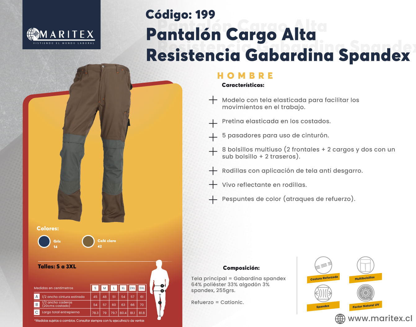 Este pantalón de alta resistencia para hombre está diseñado para afrontar los desafíos del trabajo duro con durabilidad y confort. Su mezcla de spandex garantiza un ajuste cómodo y flexible, mientras que los bolsillos cargo proporcionan un amplio espacio para herramientas y objetos esenciales. Las rodillas están reforzadas con tela anti desgarro, ofreciendo mayor resistencia en las áreas de mayor desgaste. Ideal para entornos laborales exigentes, combina protección, funcionalidad y comodidad en cada jornada.