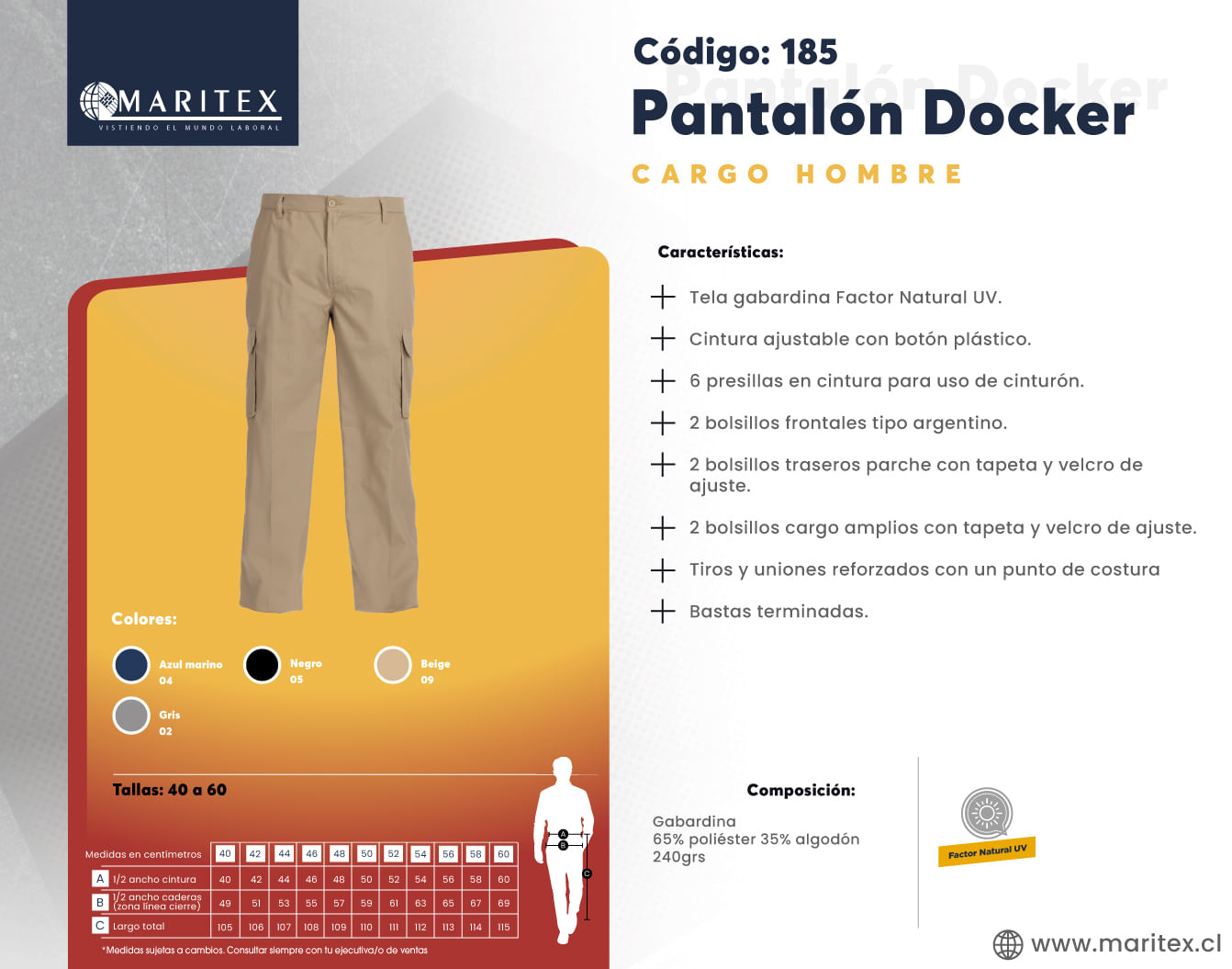 Este pantalón cargo para hombre combina un diseño práctico con un ajuste clásico. Ofrece una estructura más firme y tradicional, fabricado con materiales duraderos que aseguran comodidad y resistencia. Con varios bolsillos funcionales, es ideal para quienes buscan una prenda versátil y sólida, perfecta tanto para el entorno laboral como para actividades al aire libre.
