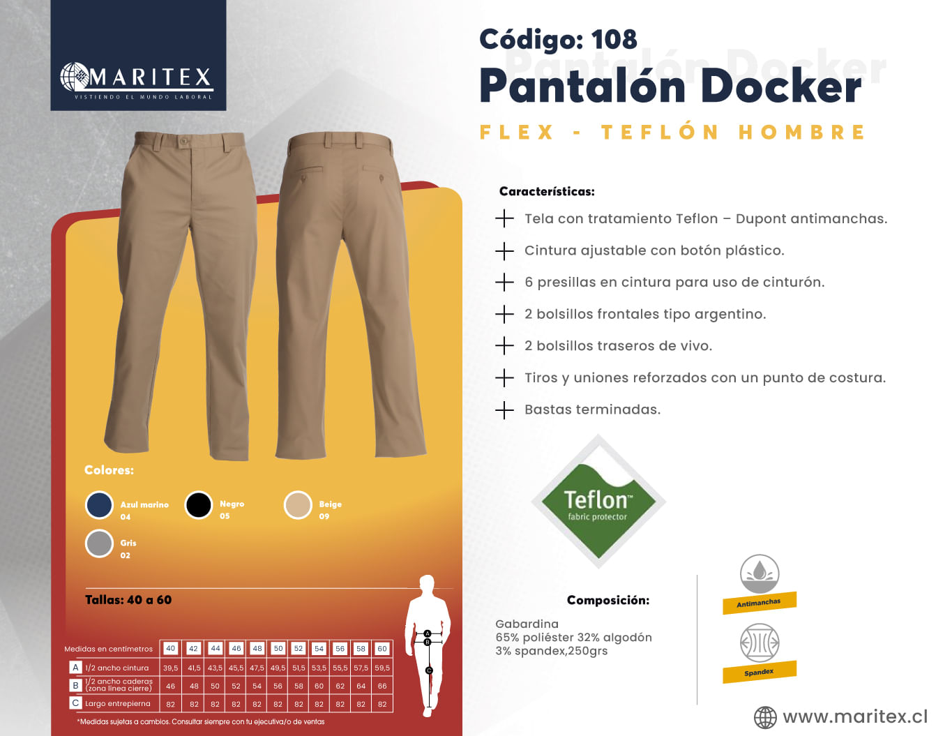 PANTALÓN DOCKER FLEX - TEFLÓN
