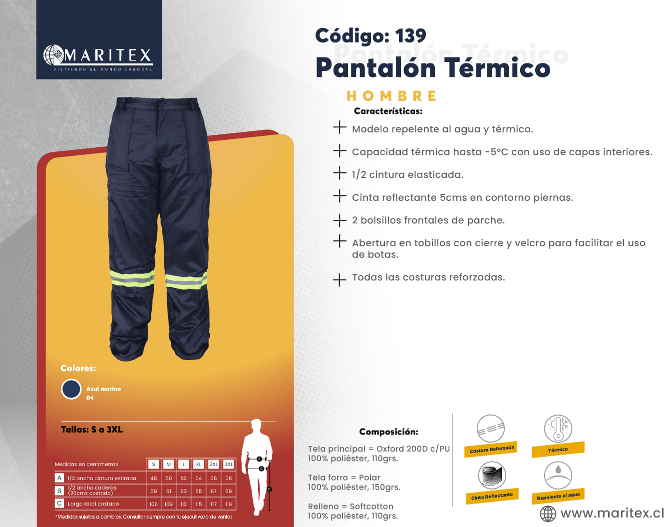 Este pantalón de trabajo térmico para hombre está diseñado para ofrecer calidez y protección en condiciones frías y húmedas. Su material repelente al agua y el forro de polar aseguran que te mantengas seco y abrigado, mientras que la cinta reflectante proporciona visibilidad en entornos con poca luz. Ideal para mantenerte cómodo y seguro durante tus jornadas laborales más exigentes.