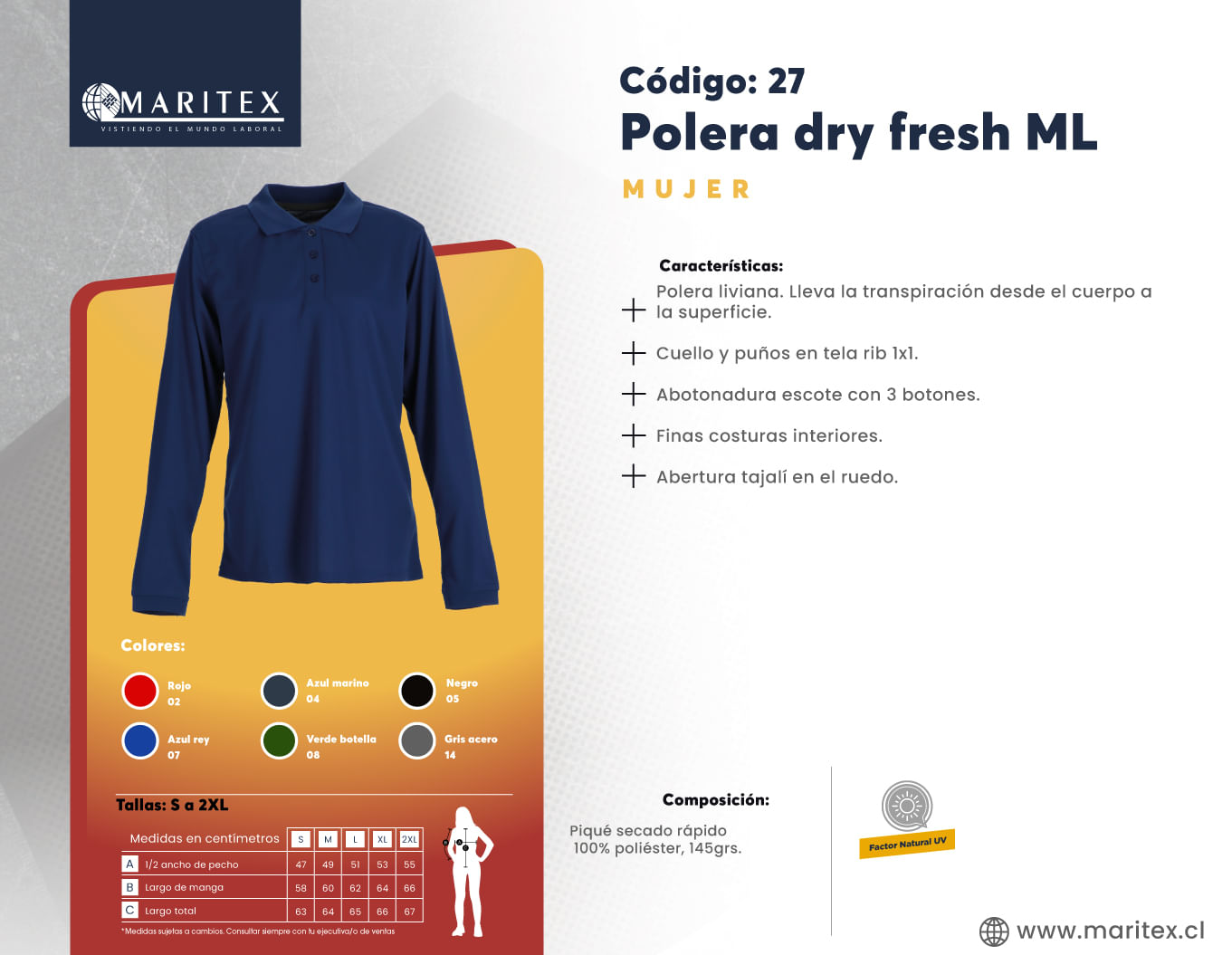 • Tecnologia Dry Fresh, Lleva la transpiración Hacia La Superficie Manteniendo Una Sensación Seca y Comoda